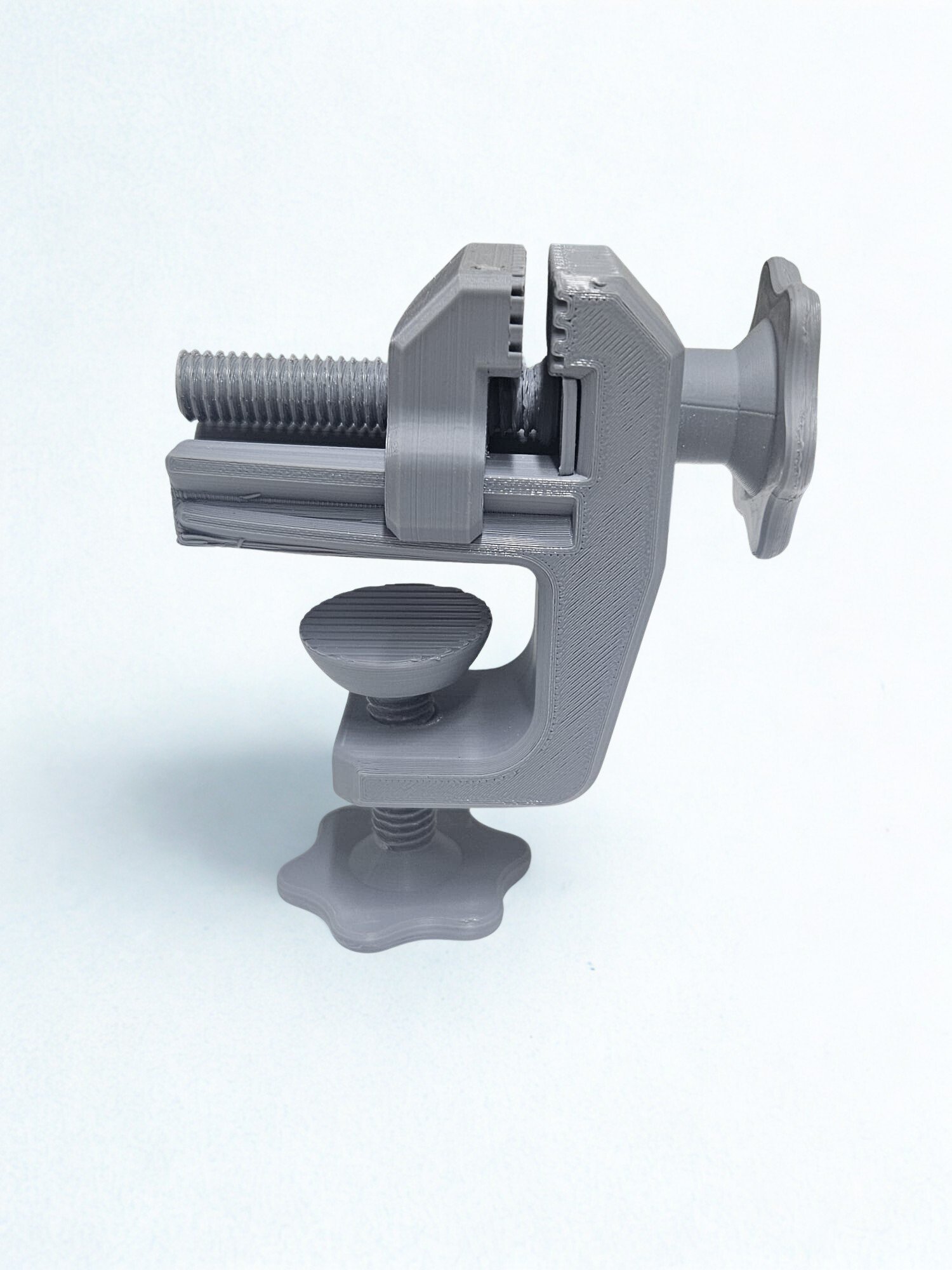 Atölyenizin küçük ama etkili yardımcısı! Bu ayarlanabilir masa mengenesi, 3D yazıcı teknolojisiyle PLA malzeme kullanılarak üretilmiştir. Vidalı yapısı sayesinde masa kenarlarına kolayca sabitlenebilir ve küçük parçaların sabit tutulmasında kullanılır. Hobi işleri, CNC, 3D yazıcı düzenlemeleri ya da elektronik projelerde oldukça kullanışlıdır. Dayanıklı tasarımı sayesinde orta seviyede tutuş gücü sunar. Plastik olduğu için hafif işler için uygundur; metal mengene yerine taşınabilir ve esnek bir alternatiftir.