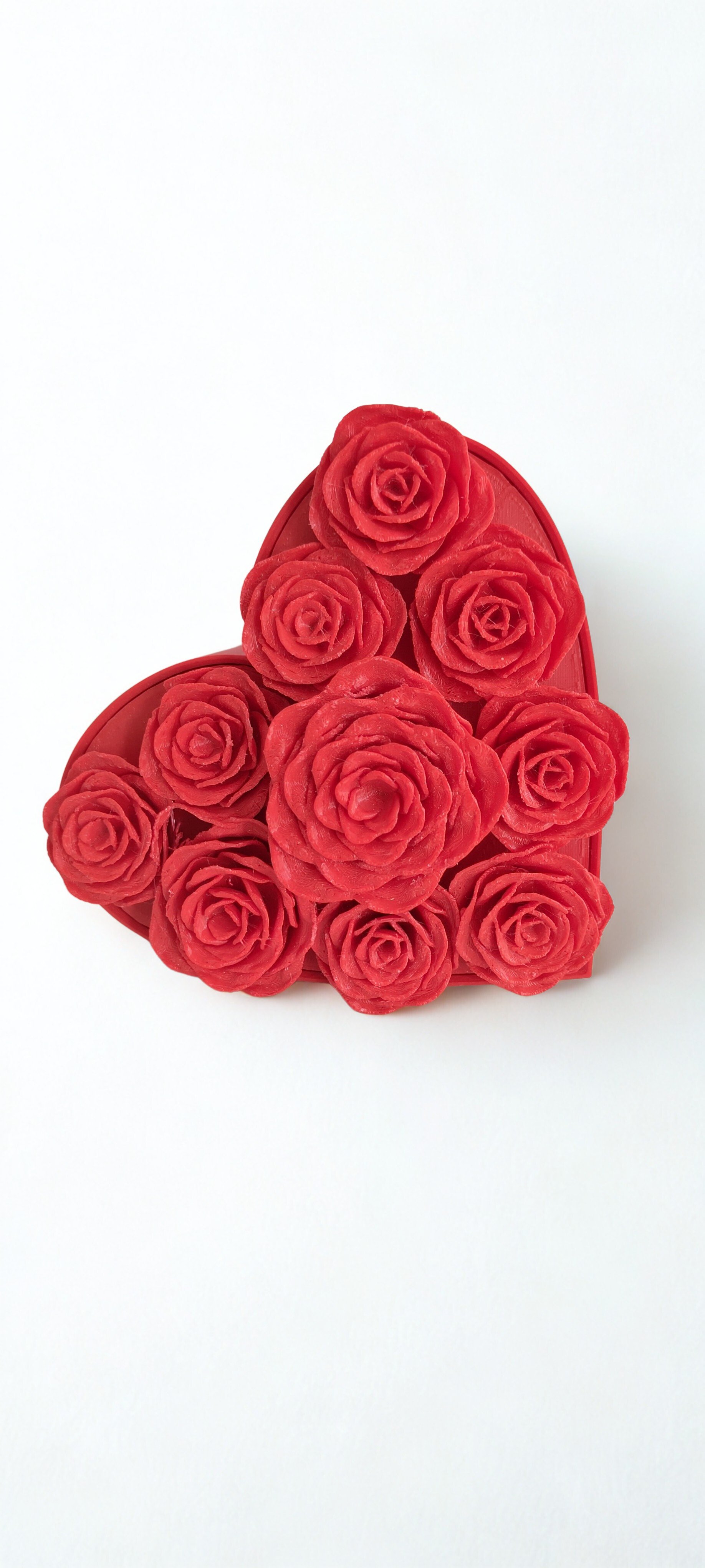 Kırmızı güllerle bezenmiş bu kalp şeklindeki 3D dekoratif ürün, aşkı ve zarafeti aynı tasarımda bir araya getiriyor. Sevgililer Günü, yıl dönümü ya da özel gün hediyesi olarak benzersiz bir tercih sunar. Yüksek kaliteli 3D yazıcı ile üretilen bu dekor, her detayıyla el işçiliğini andıran estetik bir şıklık sunar. Yaşam alanlarınızda romantik bir atmosfer yaratmak isteyenler için eşsiz bir parçadır. Aynı zamanda iç mekan tasarımlarına zarif bir dokunuş katar.