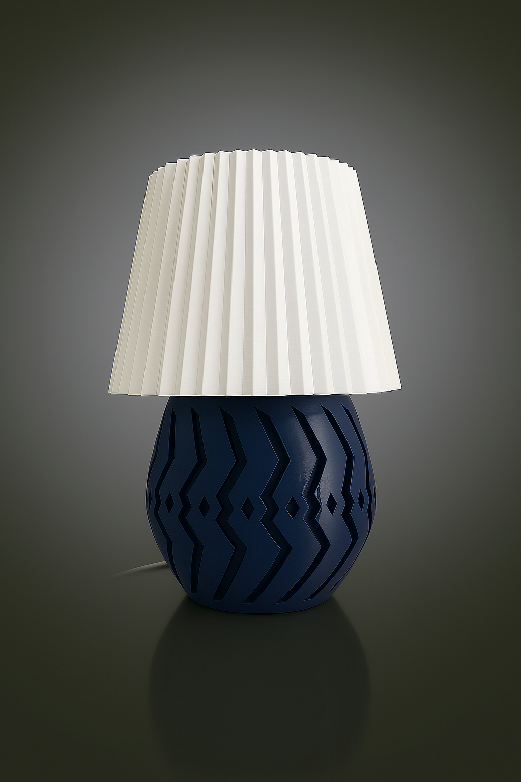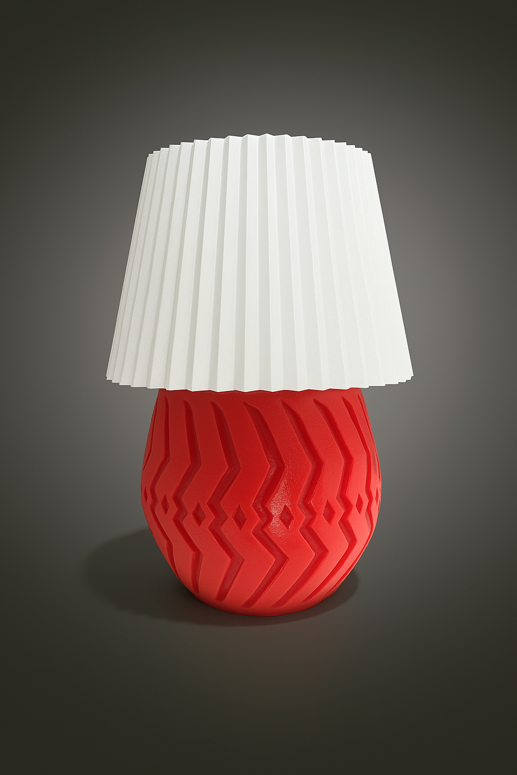 Dekoratif masa lambaları kategorimizde yer alan bu özel ürün, kırmızı zigzag desenli vazo gövdesi ve klasik pileli abajuruyla dikkat çeker. 3D baskı teknolojisiyle üretilmiş olan bu masa lambası, hem estetik görselliği hem de fonksiyonel aydınlatmasıyla yaşam alanlarınıza modern bir hava katar. Özellikle salon, yatak odası, ofis gibi ortamlarda stil sahibi bir dekoratif obje olarak kullanılabilir. Neptune Studio’nun özgün dokunuşlarıyla tasarlanmış bu lamba, ev dekorasyonuna kalite ve zarafet katmak isteyenler için ideal bir tercihtir.